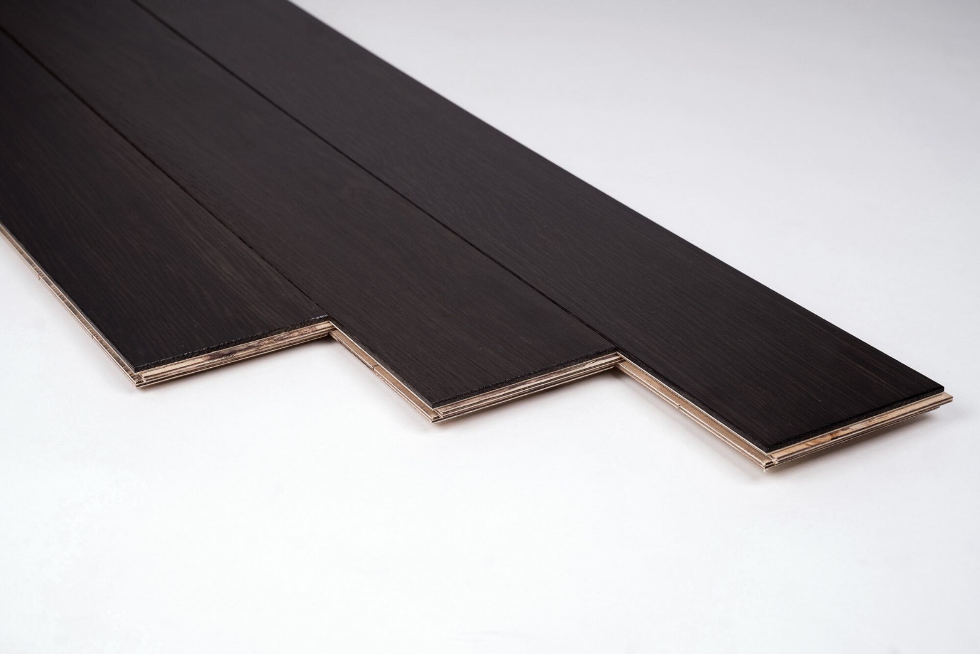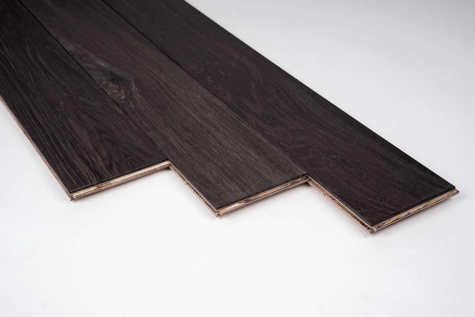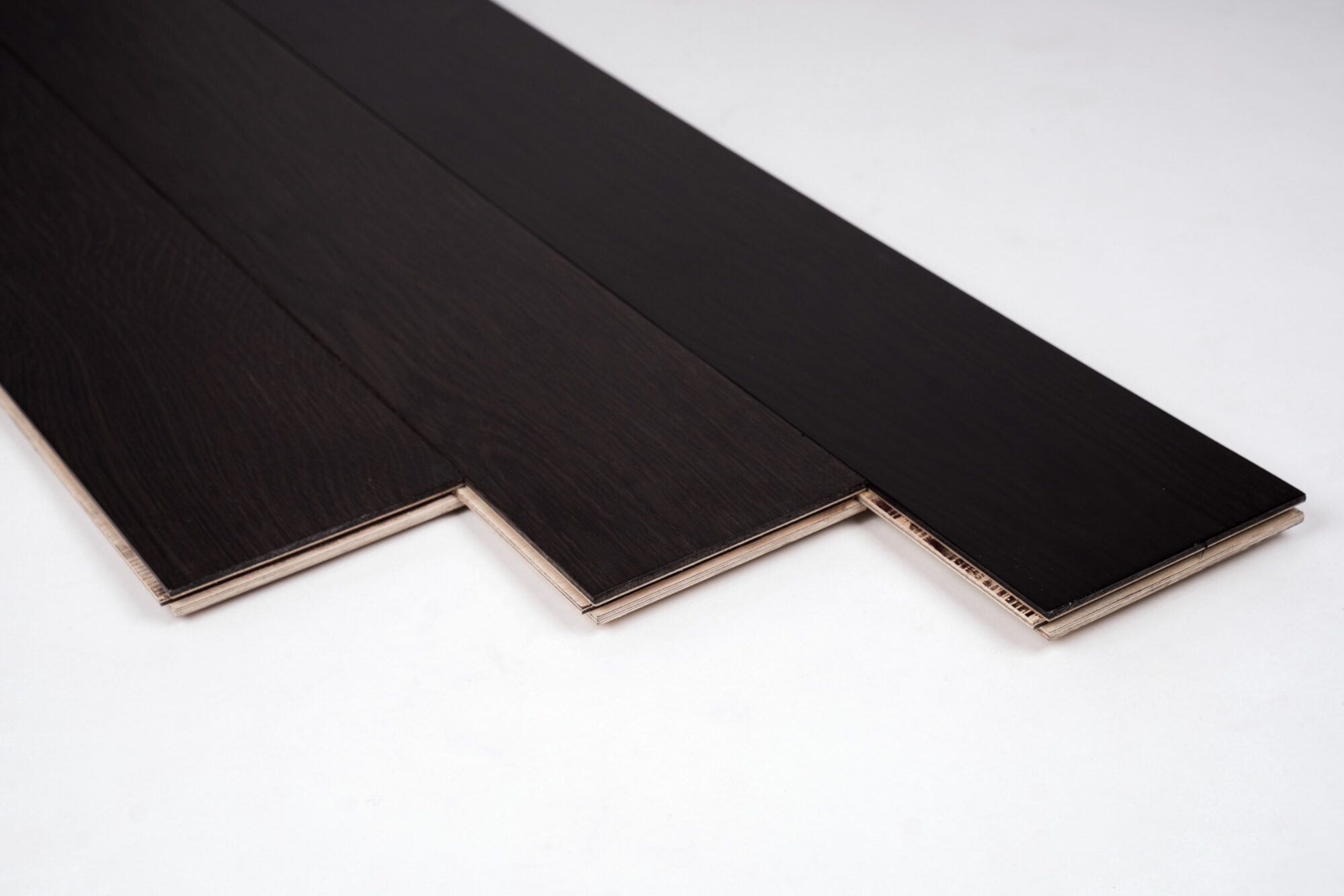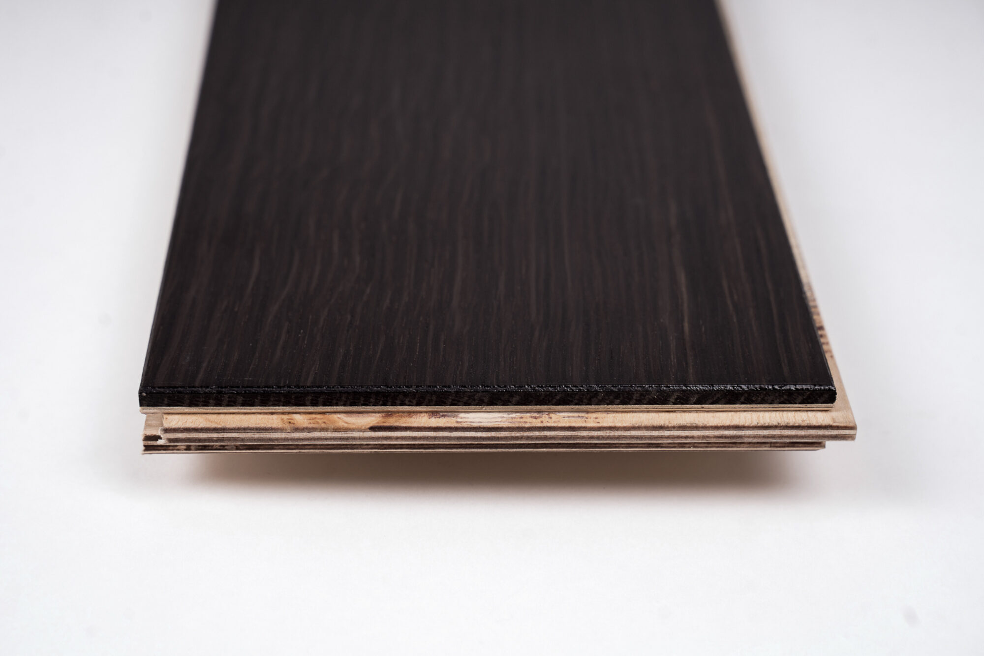 Deski podłogowe warstwowe – warstwa dolna (bazowa): sklejka brzozowa; warstwa wierzchnia (6 mm): czarny dąb . Barwa : czarna , grafitowa , odcienie brązu